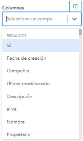 IMPORTANTE: El sistema solo traerá en la lista desplegable los campos relacionados en las columnas y grupos explicados anteriormente.