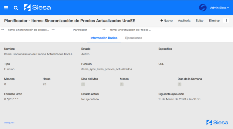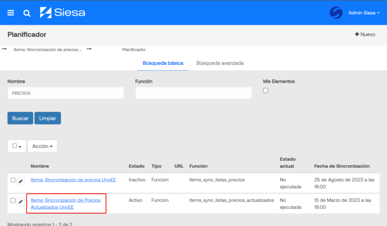 Seleccionar / Clic: “Items: Sincronización de Precios Actualizados UnoEE”